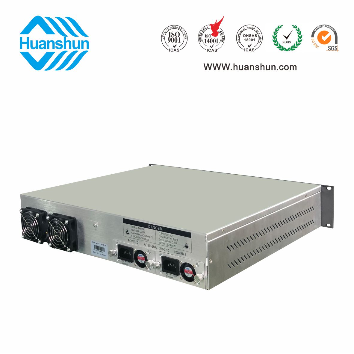大功率光纖放大器EYDFA | YGF1516-16C | 19 " 2U/3U標(biāo)準(zhǔn)機(jī)箱,-5 ~ +10 d Bm輸入,16路標(biāo)稱(chēng)規(guī)格(16、17、18、19、20、21、22、23dBm)放大輸出,并支持下調(diào)-2dB,安全連接模式,NF ≤ 5dB(0dBm時(shí));內(nèi)置FWDM合波器,插播損耗 ≤ 1dB;雙模塊熱插撥電源,AC90 ~ 255V或DC-48V供電,RJ45標(biāo)準(zhǔn)網(wǎng)管(支持SNMP、WEB) |
