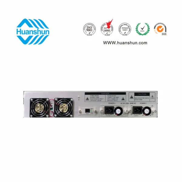 大功率光纖放大器 | YGF1516-16 | 19 " 2U/3U標(biāo)準(zhǔn)機(jī)箱,-5 ~ +10 d Bm輸入,16路標(biāo)稱規(guī)格(16、17、18、19、20、21、22、23、24dBm)放大輸出,并支持下調(diào)-2dB,安全連接模式,NF ≤ 5dB(0dBm時(shí));內(nèi)置FWDM合波器,插播損耗 ≤ 1dB;雙模塊熱插撥電源,AC90 ~ 255V或DC-48V供電,RJ45標(biāo)準(zhǔn)網(wǎng)管(支持SNMP、WEB) |